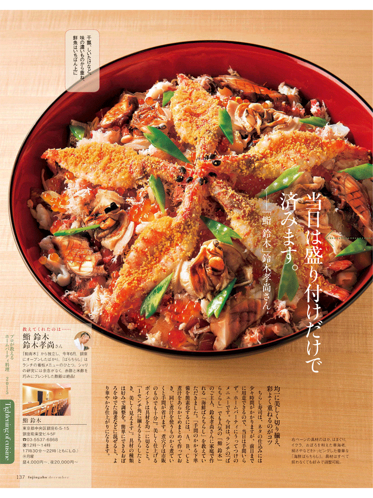 | 2015年11月11日 婦人画報 2015年 12月号より 乾椎茸を使ったバラちらしの作り方 |