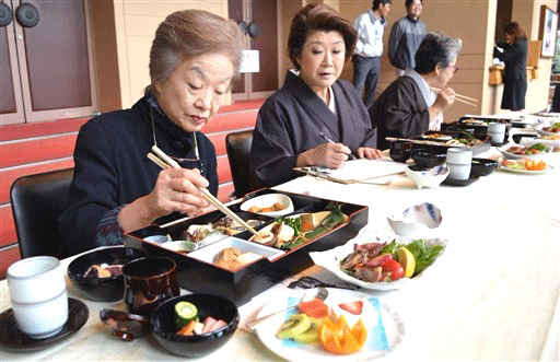 | 2016年3月11日 静岡新聞SBS(2016/3/3 07:37) 伊豆市で東京五輪自転車競技の開催が決定するなど、今後国内外から多くの観光客が伊豆地域を訪れると予想される中、県東部農林事務所はこのほど、伊豆地域の食材を活用した弁当の試作検討会を同市の修善寺総合会館で開いた。地元の旅館や飲食店の関係者らが参加し、伊豆の食材の可能性を探った。 メニューは、伊豆市産の天城シャモを使った竜田揚げやシシ肉のチャーシュー、シイタケのグラタンやアユのササ焼きなど11種類。修善寺温泉街の旅館の調理師を中心とした「修善寺調理師協会」が試作に協力し、地元食材をふんだんに使った豪華な弁当に仕上げた。 旅館の経営者や女将(おかみ)、県の担当者など10人が試食し、「こんなにさまざまな調理方法があるとは」「豪華すぎるのでこの中からどれを活用するか検討が必要」などと意見を交わした。 同事務所は東京五輪開催や訪日観光客の増加などを見据え、実施する事業者を探しながら今後、弁当の商品化に向けた検討を進める。伊豆地域への誘客や地元食材の消費拡大を目指し、同事務所が昨年1月から同市で計5回開いた講座「伊豆食材アカデミー」の一環で行った。画像は、弁当を試食する参加者=伊豆市の修善寺総合会館 |