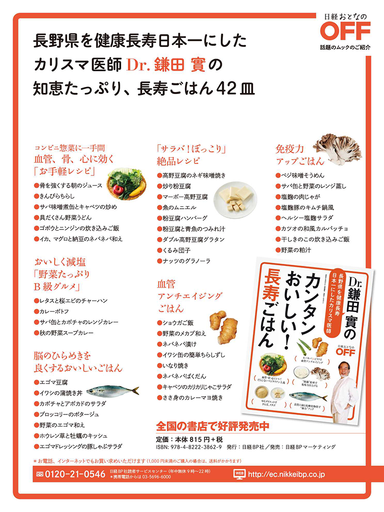 2017年3月4日 長野県を健康長寿日本一にしたカリスマ医師 Dr.鎌田 實の知恵たっぷり、長寿ごはん42皿