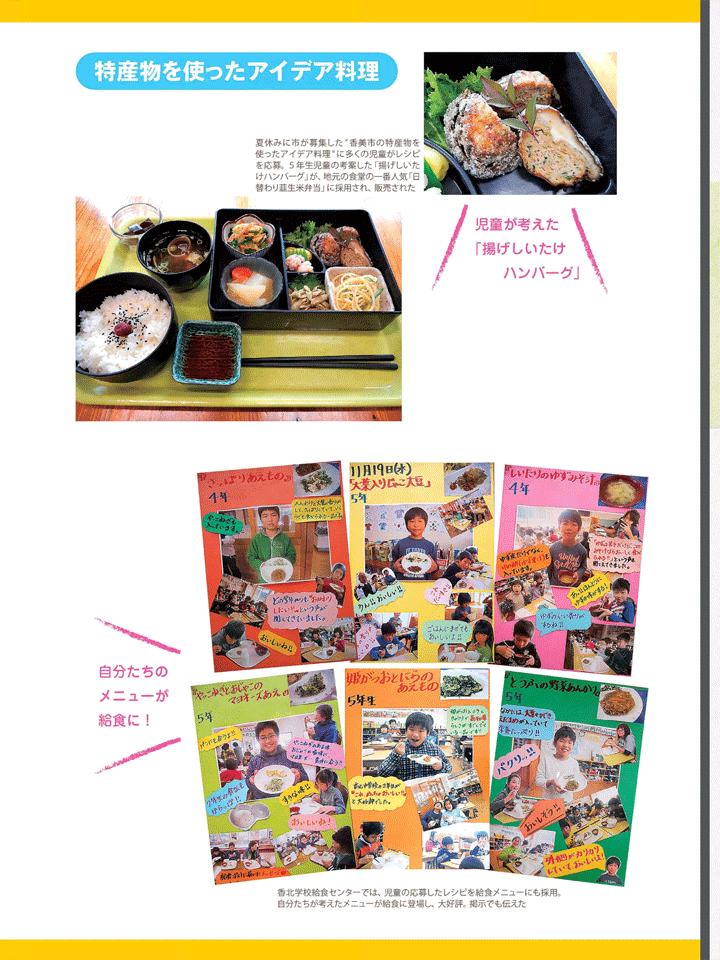 | 2017年7月4日 高知県・香北学校給食センター「特産品を使ったアイディア料理」に児童が考えた「揚げしいたけハンバーグ」 |